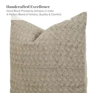 Handmade Block Print 100% Thick Cotton 20" x 20" Accent Throw Cushion Cover with Zipper - Pillowcase for Bedroom, livingroom, Couch, Sofa, Outdoor, Chair, Bed, Home Décor- Amelie (Beige)