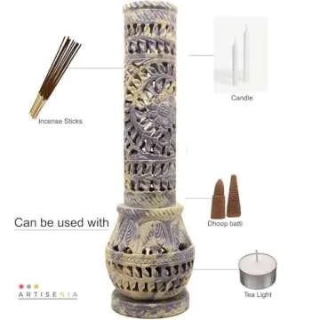 Handmade Carving Round Soapstone Incense Stick Tower Holder | Marble Incense Stick Tower Burner Holder Spa Aromatherapy Home Office Fragrance Accessories Home Office Decor - (11 X 3 Inches)