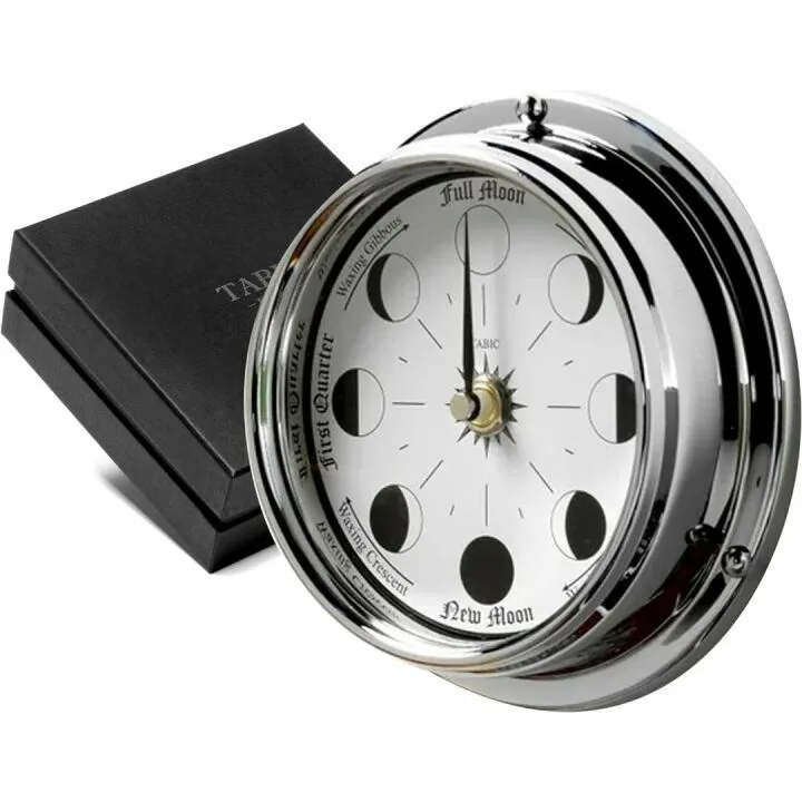 Show moreIntroducing the Tabic Handmade Chrome Moon Phase Clock in a Solid Brass case, an elegant and timeless piece perfect for any home or office setting. This exceptional clock features a full moon design with a pristine white dial, all encased in high-quality solid brass. Its artisanal craftsmanship ensures not only an aesthetically pleasing addition to your décor but also gives it remarkable durability. Tabic's reputation for top-tier design and functionality shines through in this stunning piece, making it an ideal choice for those who appreciate the finer things in life.
