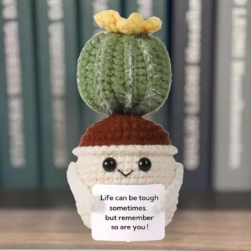 Handmade Crochet Mini Funny Potted-Positive Emotional Support Plant,Crochet Desk Decor,Crochet Flower Decor,Gift for Friends,Mother's Day Gift,Encouragement Gifts (Cactus-2)