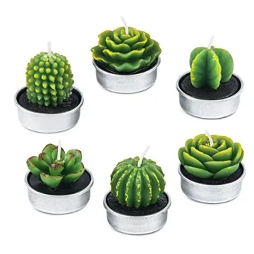 Show moreTransform any space with these exquisite cactus-shaped tealight candles that bring uniqueness and charm to your decorations. Crafted with precision, each candle showcases a distinct cactus design, creating a lifelike appearance that is hard to resist. The set contains 6 different cactus shapes, making it an eye-catching centerpiece for any event or a tasteful addition to your home decor. Made from high-quality paraffin materials, these candles not only solve the dilemma of smoke but also exude a gentle ambiance, burning for 4-5 hours. Whether it's a birthday party, wedding, or any festive occasion, these candles can effortlessly elevate the atmosphere to a warm and romantic setting.