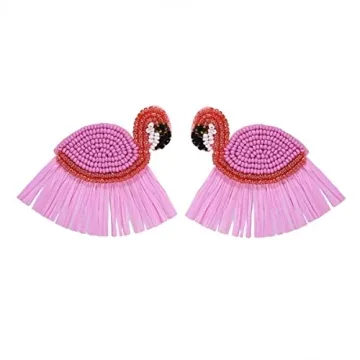 Handmade Flamingo Lobster Beaded Drop Dangle Earrings Beads Tassel Alpaca for Women Cute Animal Christmas Xmas New Year Party Jewelry-Flamingo C