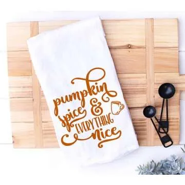 Handmade Pumpkin Spice and Everything Nice Kitchen Towel - 100% Cotton Fall Towel - 28x28 Inch Perfect for Chef-Housewarming Pumpkin Birthday Gift (Pumpkin Spice and Everything Nice)