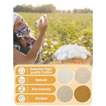 Handmade Woven Drink Coasters, 8 Pcs BOHO Coasters for Home Decor, Heat-resistant Farmhouse Cotton Table Absorbent Coasters for Kinds of Cups New House Gift (4.3in, Yellow/Brown/White)