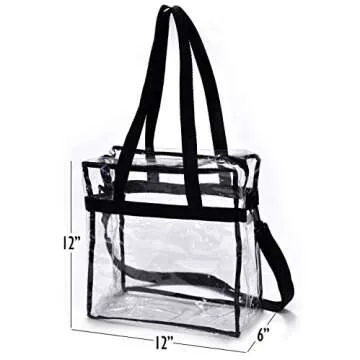 Show more If you are seeking a reliable and stylish way to carry your essentials, look no further than this fantastic clear tote bag! Designed with premium quality materials, this bag not only meets venue requirements but also excels in everyday use. Its transparent design facilitates quick security checks, making it a fantastic option for stadiums, concerts, and workplaces where bag policies are strict. With both short handles and a long, adjustable crossbody strap, you can choose your preferred carrying method for maximum comfort and convenience.