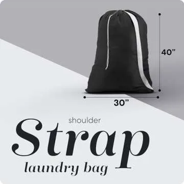 Handy Laundry Shoulder Strap Bag - Drawstring Locking Closure, Durable Nylon Material, Large Capacity, Heavy Duty Stitching, Perfect for Laundromat or College Dorm (Black | 30" x 40")