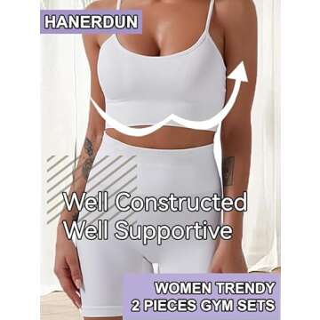 HANERDUN Yoga 2 Piece Outfit Workout Gym High Waist Leggings with Sport Bra Set for Women White