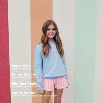 Show moreDiscover the perfect blend of comfort and style with the Hanes EcoSmart midweight sweatshirt, designed specifically for young girls. This sweatshirt is a fantastic choice for parents looking to provide their daughters with cozy apparel that doesn't compromise on fashion. Made from cotton sourced from American farms, this product not only promotes sustainability but also ensures a soft and plush feel against the skin. The midweight fleece, at a comfortable 7.8 oz, is ideal for layering during chilly seasons without adding bulk to the outfit.