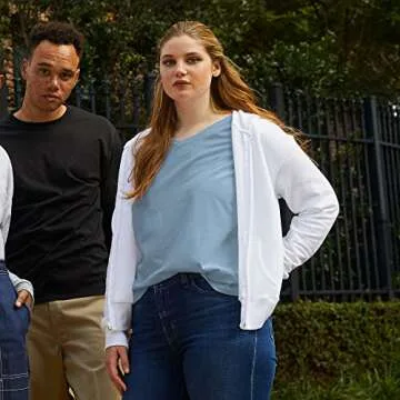 Hanes Women's EcoSmart Full-Zip Hoodie Sweatshirt, White, Large, 50% Cotton, 50% Polyester