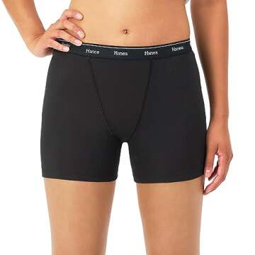 Hanes Women's Mid-Thigh Boxer Brief Pack, Stretch Cotton Underwear, 4-Pack, Basic Color Mix