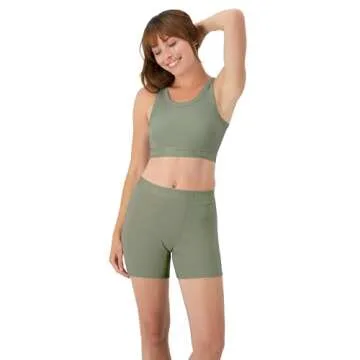 The crop top features a ribbed design paired with a stretchy under-bust band, ensuring a fit that feels snug yet flexible. On the other hand, the matching boxer shorts are crafted with a tonal Hanes soft-stretch elastic waistband, providing a comfortable, fitted style that doesn't sacrifice mobility. With chic ribbing and a high-waisted cut that boasts a 5-inch inseam, you're assured that both pieces are fashionable and functional, making them a wardrobe staple.