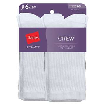 Hanes Women's Ultimate Crew 6-Pack Socks, White, 5-9