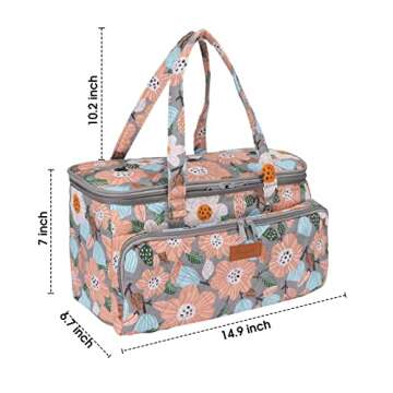 Introducing the innovative Hanfetch Yarn Bag, your ultimate companion for knitting and crocheting enthusiasts! Crafted from 100% quilted cotton on the outside and 100% polyester on the inside, this bag not only exudes elegance with its stylish Flower-Grey pattern but is designed to offer unparalleled functionality. Measuring at 14.9 x 7 x 6.7 inches, with a comfortable 10.2-inch handle, it's the perfect size to store your yarn skeins, crochet hooks, and knitting needles. Enjoy the convenience...