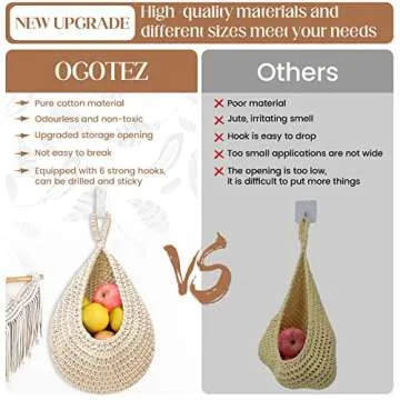 Hanging Fruit Baskets for Kitchen - 3 Pack Boho Wall Hanging Basket with 6 Pcs Strong Hooks, Handwoven Onion Storage Teardrop Home Onion Basket for Fruits Vegetable Potato Kitchen Storage (White)