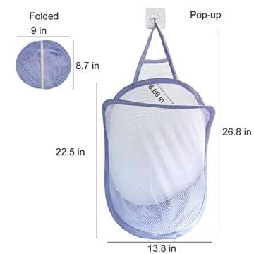 The Hanging Laundry Hamper Bag is a revolutionary storage solution for anyone looking to simplify their laundry routine. Crafted from high-quality lightweight mesh polyester and reinforced with strong steel wire, this collapsible hamper combines durability with breathability, allowing air circulation that helps prevent odors. Its smart folding design measures just 9'' X 8.7'' X 1.2'' when flattened, making it superbly convenient to transport...