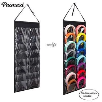Hanging Padded Headbands Storage Organizer for Women Lady, Girl Wide Knotted Headband Holder with 16 Clear Pockets, Fashion Turban Velvet Hair Head band Hoop Display Stand. (16 slot,felt,black)
