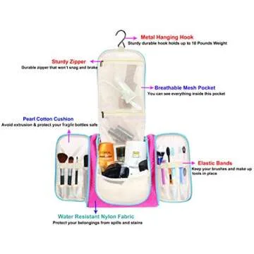 Hanging Toiletry Bag Extra Large Capacity | Premium Travel Organizer Bags For Men And Women | Durable Waterproof Nylon Bathroom, Shower, Makeup Bag For Toiletries, Cosmetics, Brushes, Shampoo (Pink)