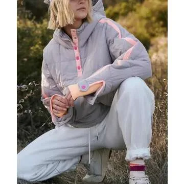 Show moreIntroducing the HangNiFang Women's Oversized Quilted Pullover Puffer Jacket with Hood, your ideal companion for the crisp winter days ahead! This fashionable puffer jacket seamlessly combines style and warmth, featuring a quilted design that adds a chic touch to any outfit. With its pullover closure and 1/4 button-up design, you can easily slip it on for comfort and convenience. The generous sizes cater perfectly to those who appreciate a relaxed, oversized fit, allowing for layering over your favorite sweaters or tees.