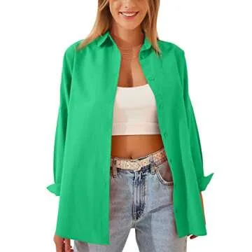 Show moreIntroducing the HangNiFang Women’s Oversized Button Down Shirts, the perfect blend of style, comfort, and versatility! Crafted from premium soft cotton, this chic blouse features a front button-down closure, a drop shoulder design, and a fashionable lapel collar. Its loose fit makes it not only trendy but also flattering, making it ideal for various occasions—from professional settings to casual outings. Available in multiple colors including classic white, sophisticated black, and vibrant green, this shirt caters to every taste and wardrobe need. Enjoy a refined look that feels as good as it looks, no matter where you wear it.