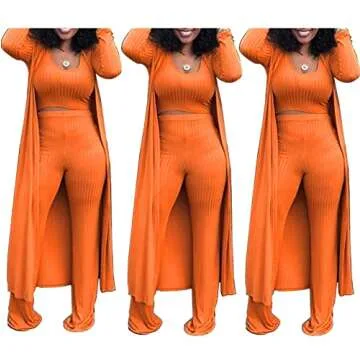 Show moreIntroducing the HANMAX Women's 3 Piece Tracksuit Set for Stylish Comfort—a perfectly curated ensemble designed for the modern woman who values both fashion and ease. This luxurious outfit features a stylish knitted long-sleeved blazer coat, a chic tank top, and high waist long pants, all crafted from a premium blend of cotton and spandex to ensure a flattering fit that moves with you. Whether you're out for coffee, attending an event, or lounging at home, this set combines an elegant look with unparalleled comfort.