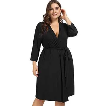 Show moreIntroducing the Hanna Nikole Women Kimono Robes, the ultimate blend of comfort and elegance crafted for today’s modern woman. Made from soft, breathable cotton, these knee-length robes are designed to effortlessly elevate your lounging experience. With their stylish 3/4 sleeves and perfect hemline, these robes provide a relaxed fit, making them ideal for a variety of occasions, from cozy mornings to elegant evenings. Available in classic black and specially tailored for plus sizes up to 22W, this robe not only makes you feel fabulous but also looks stunning on everyone. With features specifically designed to accommodate a growing baby bump or postpartum recovery, this robe is perfect for mothers-to-be and new moms alike. You deserve to feel both cozy and chic! Less