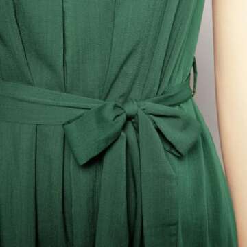 Hanna Nikole Womens Casual Dress for Summer - Pleated Flowy Midi Sundress in Dark Green