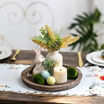 Hanobe Rustic Wooden Serving Tray: Round Wood Butler Decorative Tray Vintage Centerpiece Candle Holder Trays Farmhouse Ottoman Tray for Decor Countertop Home Decor Accessories for Coffee Table