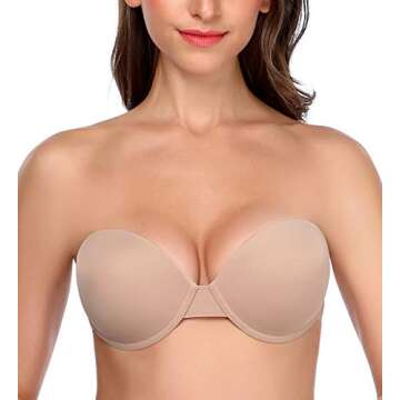 HANSCA Women’s Backless Strapless Push Up Bra Thick Padded Sticky Underwired Bras Self Adhesive(Nude,B)