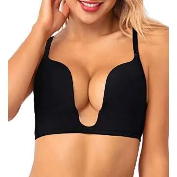 HANSCA Women's Deep Plunge Bra Cleavage Enhancer Low Cut Wireless Bra Padded Push Up (Black, 38D)