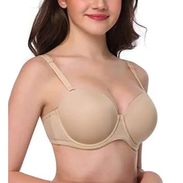 HANSCA Women Strapless Bra Convertible Multiway Full Cup Anti-Slip Lift Underwire Bra Plus Size (Nude, 34DD)