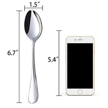 Show more If you're looking for a perfect blend of style, durability, and functionality, look no further than these exquisite 6.7-inch stainless steel dinner spoons. Crafted with high-quality stainless steel, these spoons are not only durable and sturdy but also designed to withstand daily use without losing their charm. Their compact design ensures that they can be stored effortlessly in drawers or utensil organizers, allowing for a clutter-free kitchen experience. Imagine enjoying your favorite tea, coffee, or dessert with utensils that boast a stylish and sophisticated design, adding a touch of elegance to every meal.