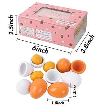 Show moreIntroducing the HANSGO Wooden Eggs, an enchanting set of 6 beautifully crafted play food toys that spark imagination and creativity in your little ones! Each egg is made from natural wood and features a safe, non-toxic finish, providing a delightful blend of fun and safety for children's playtime. Measuring 1.8 inches x 1.3 inches, this set includes 3 original color eggs and 3 classic white eggs that are designed to be opened, revealing hidden yolks inside. This unique separable design not only enhances the play experience but also aids in developing fine motor skills as children learn to assemble and disassemble the eggs, paving the way for cognitive growth.