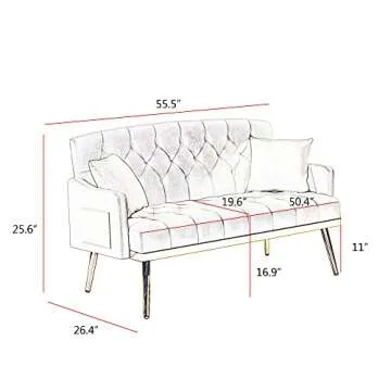 hansones 55-Inch Modern Velvet Loveseat Sofa with Gold Metal Legs & Side Pockets, Tufted Backrest, Perfect for Living Room, Bedroom, or Office (Beige)