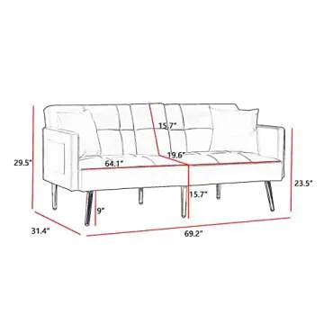 hansones Futon Sofa Bed Modern Linen Fabric Couch Bed Loveseat Convertible Daybed with 2 Cup Holders and Removable Armrests for for Compact Living Space Apartment Dorm Office (18pink)