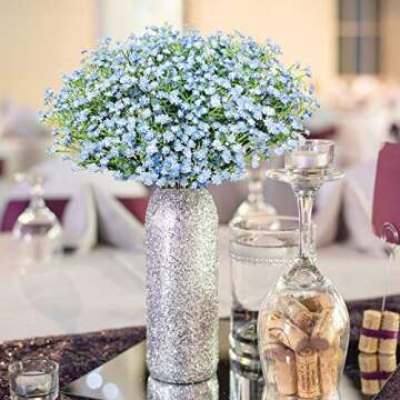HANTAJANSS Artificial Baby Breath Flowers Bulk 12 Pcs Real Touch Gypsophila Bouquets Flowers for Wedding Party Garden Home Decoration DIY Wreath (Blue)