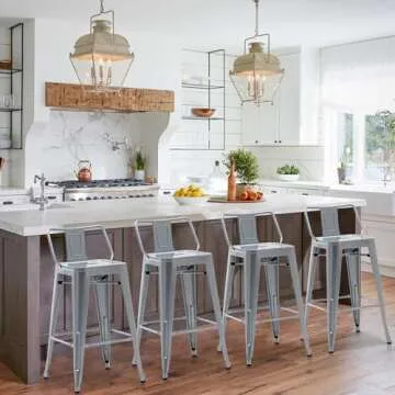 HAOBO Home 30" Low Back Metal Counter Stool Height Bar Stools [Set of 4] for Indoor/Outdoor Barstools, Silver