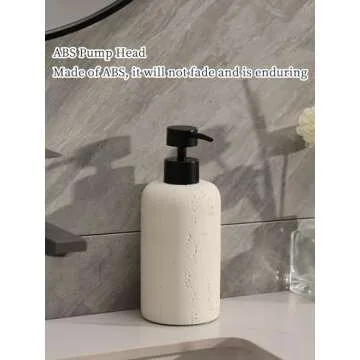 Show more Introducing the Haocoott Soap Dispenser Set, featuring two luxurious dispensers crafted to elevate your bathroom or kitchen décor. With a stunning travertine stone texture, these bottles provide a modern and elegant touch to your countertop. Each pump holds up to 340mL (11 OZ) of liquid, making them perfect for a wide variety of products such as lotion, dish soap, shampoo, conditioner, body wash, and more. The stylish cream finish seamlessly blends with any color scheme, transforming everyday functionality into a sophisticated design statement.