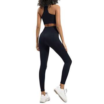 HAODIAN Women's Yoga Outfits 2 Piece High Waisted Leggings with Sports Bra Gym Clothes Sets (Black,S)