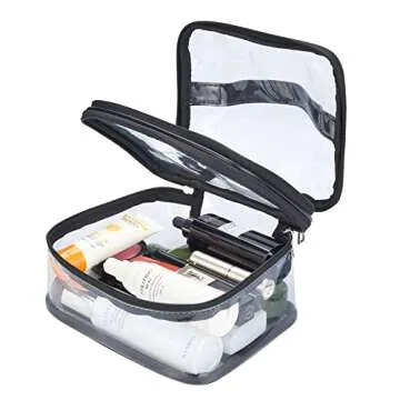HAOGUAGUA Double Layer Clear Cosmetic Bag Makeup Bag, Waterproof Travel Toiletry Bag, Transparent PVC Hair & Nail Accessories Pouch Beach Bag Organizer (Black)