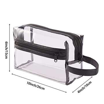 Show moreThe **HAOGUAGUA Heavy Duty Clear Travel Toiletry Makeup Bag** is a perfect companion for all your travel needs. This versatile cosmetic pouch not only keeps your toiletries organized but also complements your lifestyle with its stylish design featuring a durable 0.5mm thick PVC material. This means you can enjoy traveling without the burden of heavy bags. Its lightweight yet sturdy construction ensures that it withstands the rigors of your journey while maintaining a chic aesthetic with a soft PU leather hand strap, designed for your comfort.