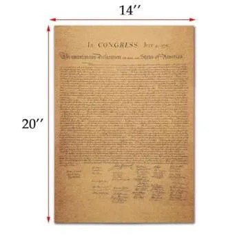 Show more The U.S. Declaration of Independence Vintage Poster is a remarkable tribute to one of the most pivotal documents in American history. Crafted with exceptional print quality on premium paper, this masterpiece showcases vivid and radiant colors that bring the text to life, ensuring each detail is crisp and clear. Perfect for any space, it measures a convenient 20''x14'', allowing for easy display in both homes and offices.