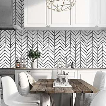 HAOKHOME Boho Peel and Stick Wallpaper Stripe Herringbone Black White Vinyl Self Adhesive Room Decor Contact Paper 17.7in x 9.8ft
