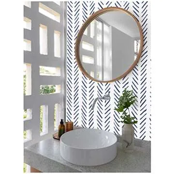Show moreTransform your living space with the stunning **HAOKHOME Boho Wallpaper Peel and Stick Wallpaper**! This chic and modern design features a delightful navy and white chevron pattern that effortlessly enhances any room's decor. The removable vinyl wallpaper is practical and stylish, offering a quick and simple installation process that requires no water, paste, or mess. Whether you're a seasoned DIY enthusiast or a first-time decorator, you'll appreciate how easy it is to apply—just peel off the backing and stick it onto your chosen smooth surface.
