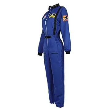 Show more Step into the universe of fun and adventure with the Haorugut Women's Astronaut Adult Space Costume. This amazing jumpsuit is more than just a costume; it's a full-length body suit designed to transform you into a captivating spacewoman ready for intergalactic adventures! Crafted from high-quality polyester, this costume ensures maximum comfort and flexibility, allowing you to wear it for hours without feeling restricted. Featuring a center front zipper for easy dressing, and authentic patches on the right breast, this costume is perfect for cosplay parties, Halloween festivities, or any event that requires a touch of space magic.