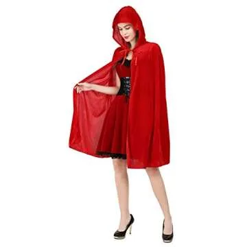 Haorugut Womens Little Red Riding Hood Cape Costumes Velvet Cloak 35"