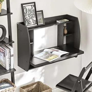 Haotian SoBuy Wall Mounted Folding Table Home Office Workstation Computer Desk with Storage Shelves Trestle Desk, Black FWT18-SCH