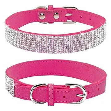 Haoyueer Rhinestone Dog Collar, Cute Dazzling Sparkling Soft Suede Leather Dog Cat Rhinestone Collar Crystal Diamond Pet Dog Puppy Collar(Hot Pink,L 38-46 cm)