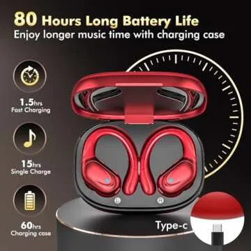 Show more Introducing the HAOYUYAN Wireless Earbuds, your ultimate companion for every active lifestyle! Designed for sports enthusiasts, these earbuds boast an impressive 80-hour playtime and utilize cutting-edge Bluetooth 5.3 technology for seamless connectivity. The stunning red color not only makes a bold fashion statement but also complements your gear perfectly. Made with athletes in mind, they feature an IPX7 waterproof rating, ensuring they withstand the toughest workout conditions, from sweat to unexpected rain showers. With a secure fit and the latest noise reduction technology, these earbuds promise an immersive audio experience no matter where your journey takes you.