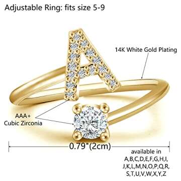 Haoze Initial Letter Ring: Adjustable Rose Gold Alphabet Ring with Crystal Inlays