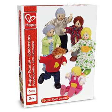 Show more Welcome to the delightful world of imaginative play with the Hape Happy Family Dolls! These charming Caucasian dolls are specially designed to spark creativity in children as they engage in various role-play scenarios. Each doll set depicts a loving family unit, complete with detailed costumes and hairstyles that represent different family roles, making playtime as educational as it is fun. The soft bodies and pliable limbs allow little hands to pose and interact with the dolls effortlessly, enhancing the whole experience.